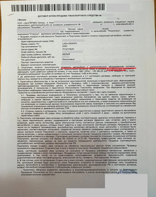 • Цена автомобиля в договоре купли-продажи изначально определена с учётом скидки. Возможность приобрести автомобиль по иной, «полной» цене договором не предусмотрена.